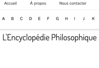 L’Encyclopédie Philosophique (EP) est un outil au service des francophones, créée dans le but de favoriser la réflexion personnelle et collective. Sa gratuité doit permettre de rendre accessible la philosophie au plus grand nombre d’internautes possible. Chaque article est rédigé par un spécialiste, expérimenté ou débutant dans la recherche.